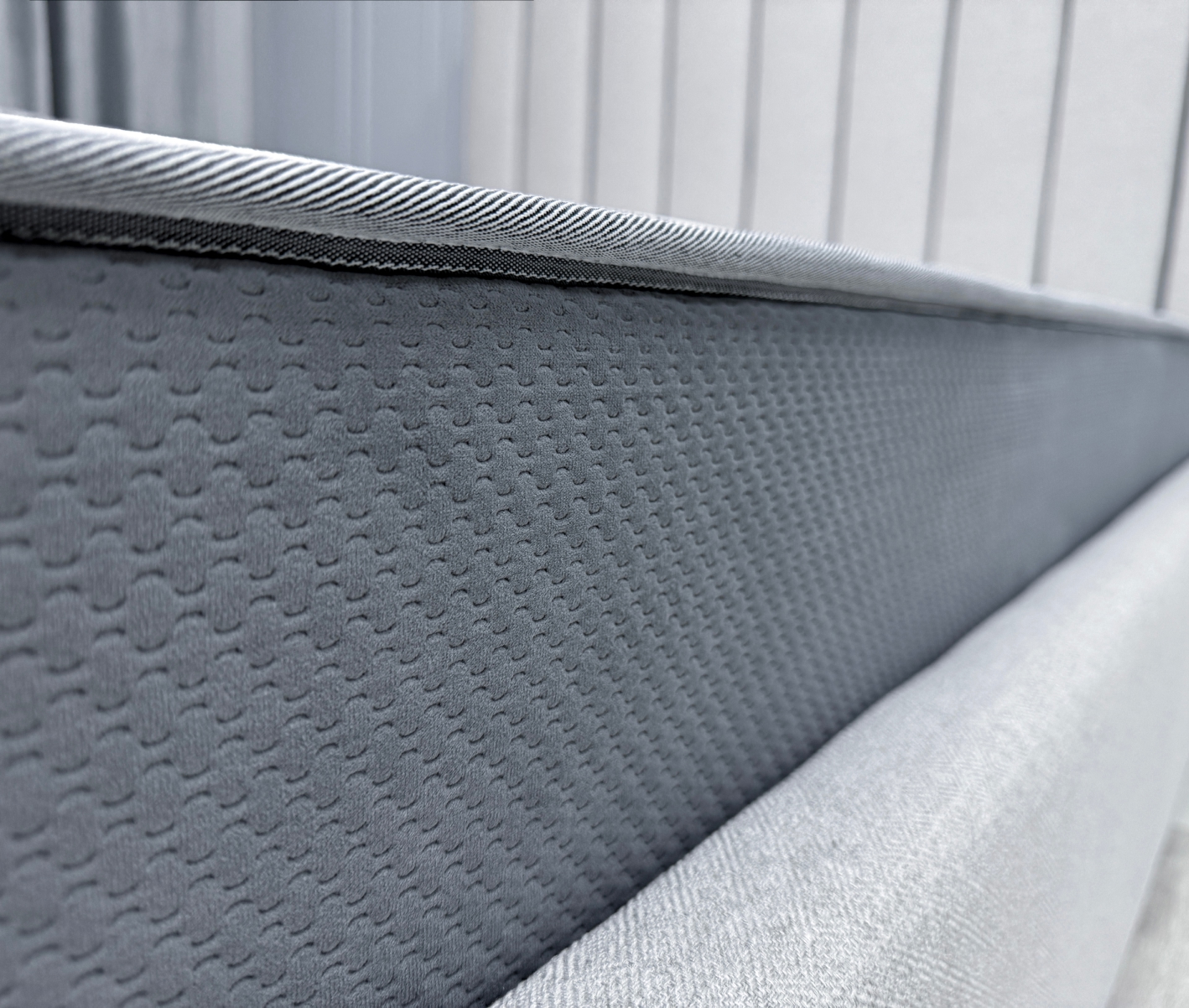 Бурлет из мебельного велюр - Бурлет матраса выполнен из плотного износостойкого велюра «SOTA GREY» с ярко выраженной текстурой. Данная ткань имеет высокую устойчивость к истиранию, не растягивается, а это значит, что матрас дольше и лучше сохранит свой первозданный внешний вид.